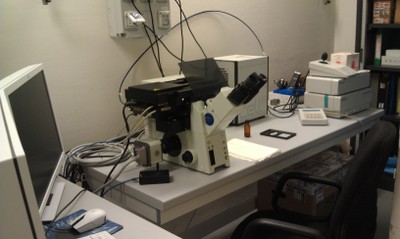 Cell^R Multiple wavelength high resolution fluorescence microscopy system. It allows the analysis of intracellular structures and their 2D/3D organization (i.e. mitochondria, endoplasmic reticulum, cytoskeleton). Moreover, multiple wavelength and system versatility permit the employ of ratiometric probes in live cells like fura or pericam. |